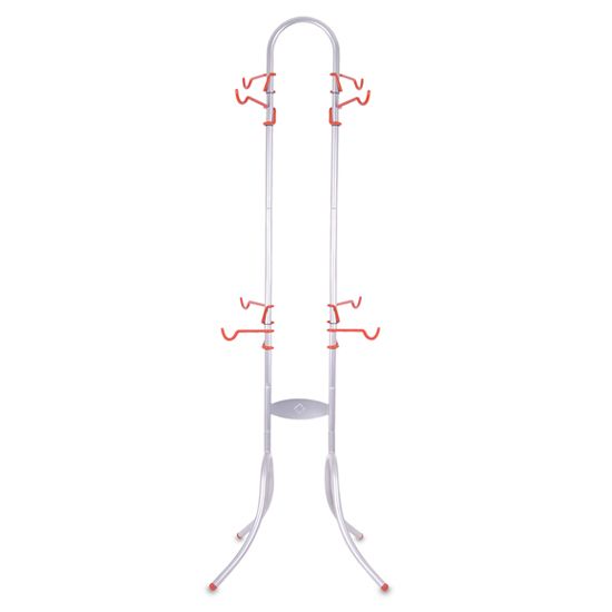 The Art of Storage's Botticelli 4 Bike Adjustable Free Standing Sports Gear Storage Rack offers a unique look that blends style and storage functionality. Constructed with silver powder coated steel tubing, the Botticelli adds stable storage and appeal to any room or garage. Featuring independent self locking arms that can be easily repositioned to fit any bicycle.